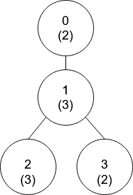 - Node 1 has only one ancestor, node 0. Their values are coprime (gcd(2,3) == 1).